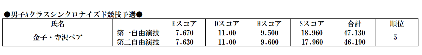 今大会は、個人Cクラス男子において優勝を果たしたり、シンクロAクラス男子において決勝進出したりするなど、練習の成果が感じられる内容だった。一方で、課題も多くみられた。来月には全日本予選会や東日本選手権大会などの大会が続くため、今大会で得たことをもとに練習に取り組んでいきたい。